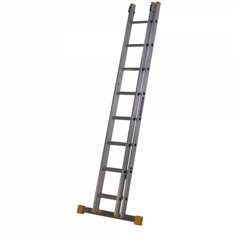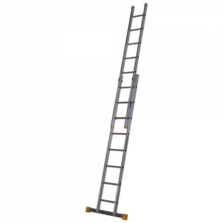 This 722 Series 2.41m double section extension ladder is made from high grade aluminium and extends to 4.07m. With box section stiles designed to ensure the ladder is lightweight but strong, this ladder is a ideal for jobs around the work site. Features include manual thumb operated locking catches to prevent sections separating, slip resistant D-shaped rungs and a wide stabiliser for added safety during use. Approved to the latest EN131 standard. For Professional Use.